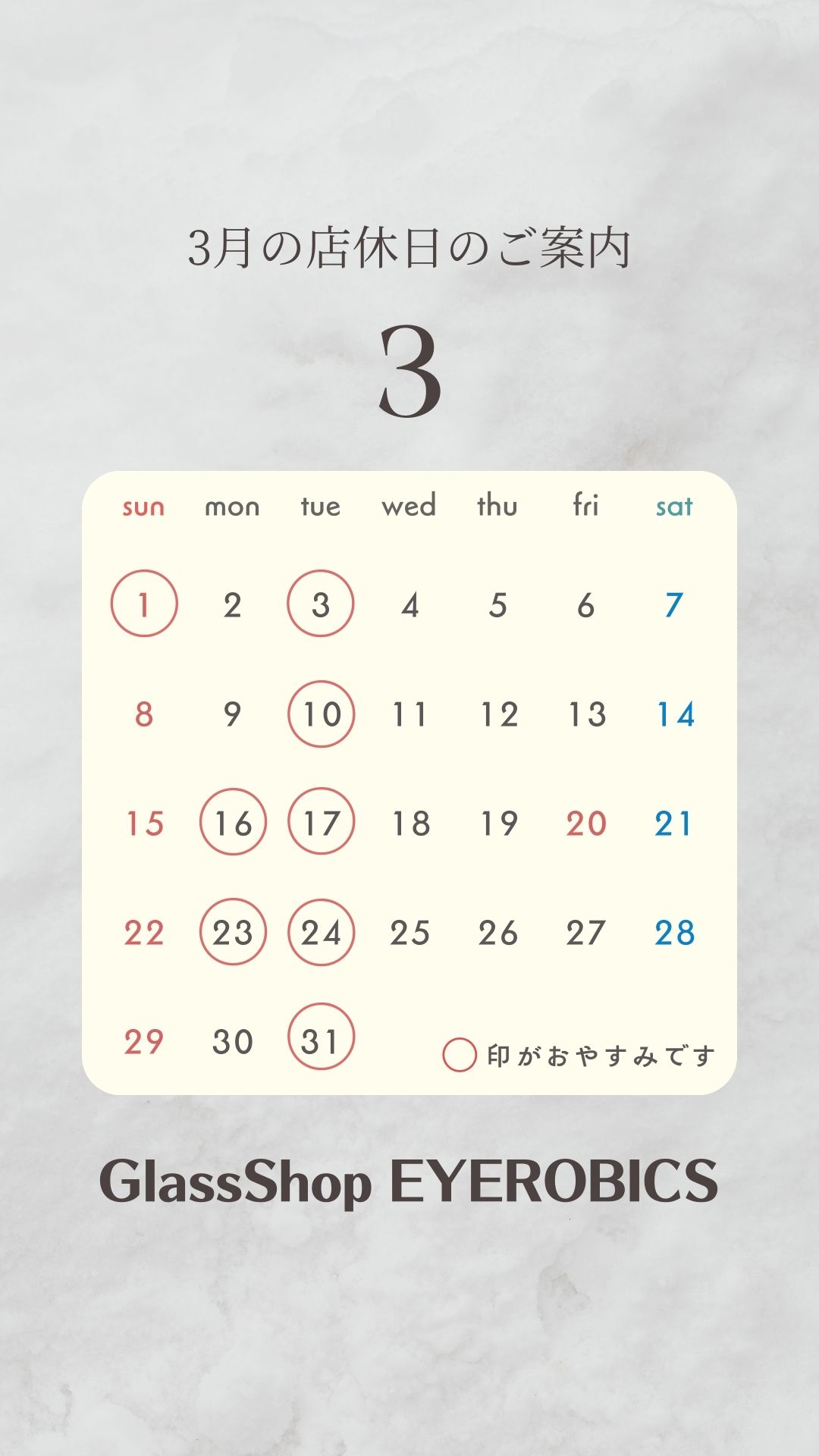 3月の営業日のご案内。